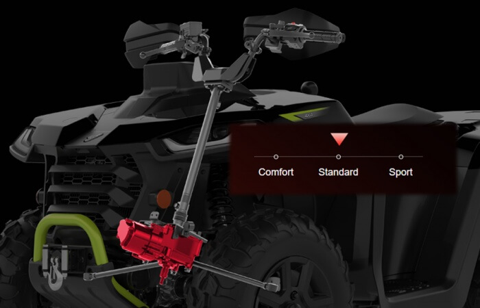 Dzięki optymalnemu rozkładowi masy, zaawansowanemu zawieszeniu i terenowym oponom, quad radzi sobie z podjazdami o nachyleniu do 39°. To wynik, który wyróżnia go w swojej klasie.