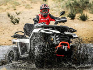 AT5 S to wszechstronny quad z czterosuwowym silnikiem o pojemności 499 cm³ (DOHC), generującym aż 39 KM mocy i 44 Nm momentu obrotowego. Dzięki chłodzeniu cieczą silnik zachowuje stabilność temperaturową nawet podczas długotrwałego użytkowania w trudnym terenie. Pojazd nadaje się zarówno do dynamicznej jazdy po bezdrożach, jak i spokojnych zadań przy holowaniu lub przewożeniu ładunków.